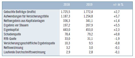 Die gebuchten Brutto-Beiträge erhöhten sich im Geschäftsjahr um 2,7 % auf 1.772,4 Mio. Euro. Mehr als doppelt so stark erhöhten sich mit 5,7% aber die Aufwendungen für Versicherungsfälle. An 82.000 in der Kranken-Vollversicherung leistungsfrei gebliebene Kunden wurden 62,2 Mio. Euro aus der erfolgsunabhängigen RfB ausgeschüttet. Das Ergebnis vor Steuern stieg um 5,5% auf 207,9 Mio. Euro.